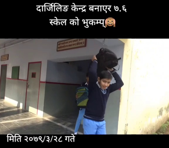 गत असार २८ गते @kingarjun82 नामक टिकटक प्रयोगकर्ताले “दार्जिलिङ केन्द्र बनाएर ७.६ [रेक्टर] स्केलको भूकम्प” शीर्षकमा एक भिडियो क्लिप पोस्ट गरे । सो सामग्रीमा विसं २०७९/३/२८ अर्थात् असार २८, २०७९ उल्लेख गरिएको थियो । नेपालीमाझ लोकप्रिय छोटो-भिडियो शेयर गर्न मिल्ने सामाजिक सञ्जाल टिकटकमा पोस्ट गरिएको उक्त सामग्रीमा भनिएको छ, “नेपालको पूर्वी क्षेत्रमा भूकम्पको धक्का महसुस ।” १६ हजारभन्दा बढी फलोअर्स भएका ती प्रयोगकर्ताले टिकटकमा आफ्नो विषयमा खुलाएका छैनन् ।