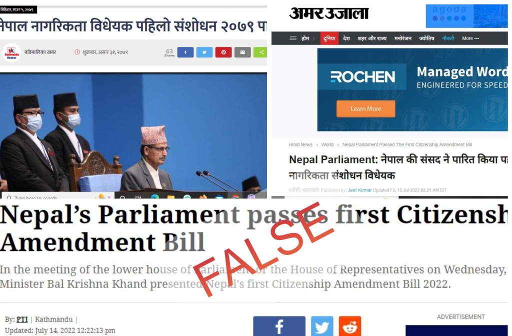 | नेपालको संसद्ले नागरिकता संशोधन विधेयक पारित गरेको छ | नेपाली र भारतीय समाचार मिडिया | गलत |