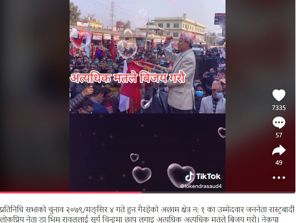| एमाले नेता भीम रावललाई अछाम क्षेत्र नं. १ बाट जिताउन आह्वान | टिकटक प्रयोगकर्ता | भ्रामक |