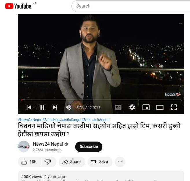 त्यसपछि हामीले न्युज २४ नेपालकाे युट्युब च्यानलमा “सीधा कुरा जनतासँग” कार्यक्रमकाे थ्रेड खाेज्दै जाँदा २०७७ साल साउन ८ गते प्रसारित कार्यक्रमकाे ५६४ औं भागमा पुग्याैँ । भाइरल अडियाेकाे अंश सीधा कुरा जनतासँगकाे यही भाग (एपिसाेड) बाट लिइएकाे हामीले पायाैं ।
